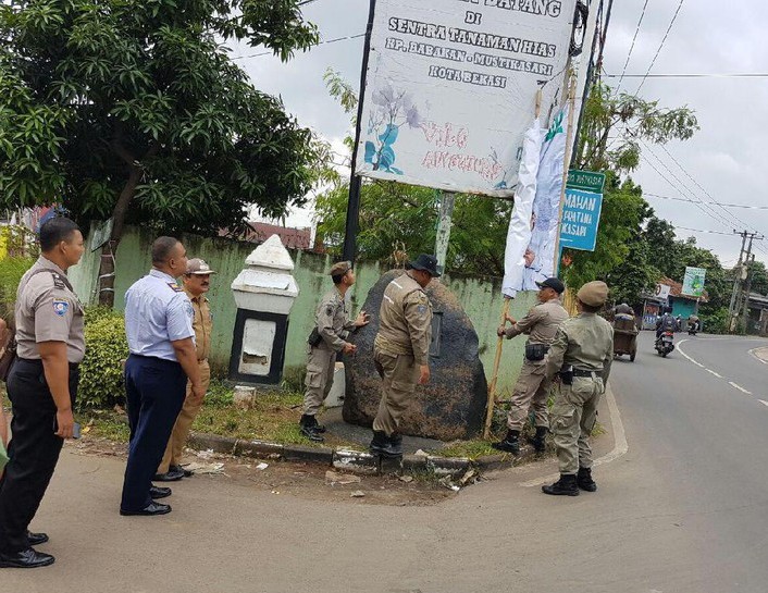 Umar menerangkan bahwa Kapolsek Bantar Gebang sudah berkomunikasi dengan Lurah Mustika Jaya dan Satpol PP Kecamatan Mustika Jaya untuk mencopot spanduk tersebut. Spanduk telah dicopot sekitar pukul 11.30 WIB.