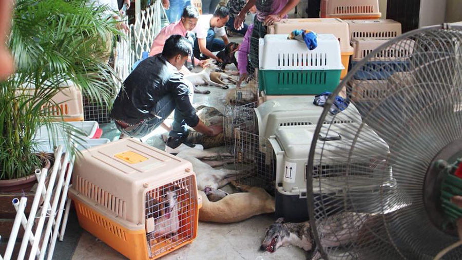 Begitu tiba di lokasi kontes, anjing-anjing tersebut tergolek lemas. Diduga, hewan itu kepanasan dan tak bisa bernapas.