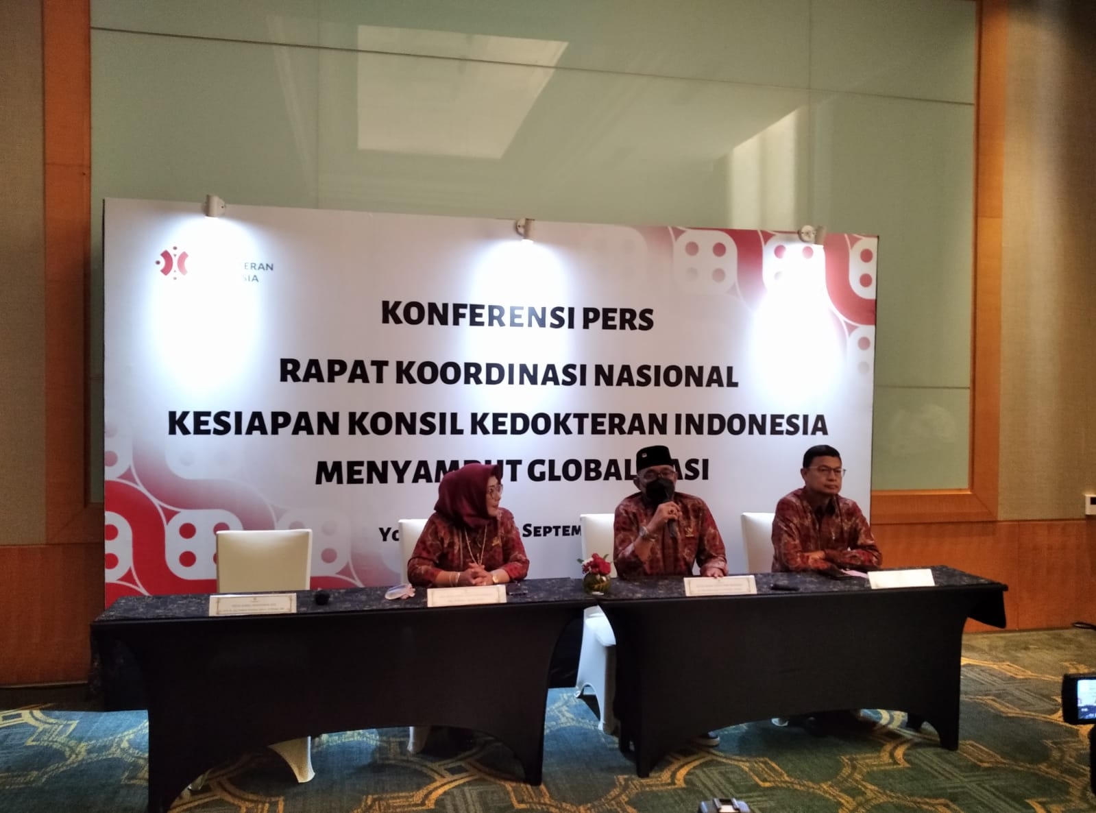 YOGYAKARTA, BERNAS.ID – Konsil Kedokteran Indonesia (KKI) menyelenggarakan Rapat Koordinasi Nasional (Rakornas) dengan tajuk “Kesiapan KKI Menyambut Globalisasi” di Yogyakarta dari tanggal 28-30 September 2022, Kamis (29/9). Rakornas bertujuan untuk menyamakan persepsi antarpemangku kepentingan tentang potensi ancaman dan peluang terkait masuknya dokter-dokter asing tahun 2025 saat MEA.