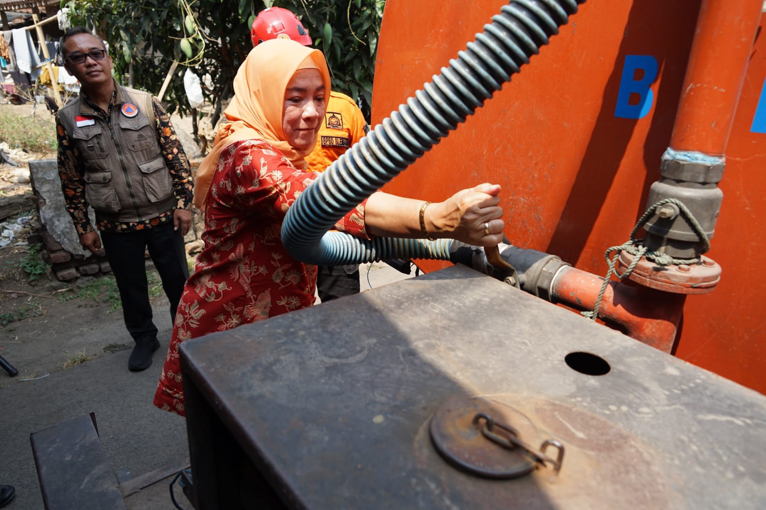 “Ikatan Dharma Wanita Kabupaten Sleman bekerjasama dengan Badan Penanggulangan Bencana Daerah (BPBD) Kabupaten Sleman menyerahkan bantuan berupa air bersih ke Dusun Tangisan sebanyak 10 tangki air bersih,” tutur Parmilah.