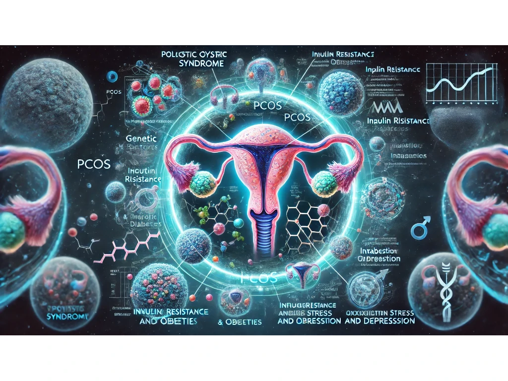 Kadar androgen yang tinggi mengganggu fungsi ovarium dan menyebabkan gejala seperti hirsutisme dan jerawat. Resistensi insulin, yang ditemukan pada sebagian besar pasien PCOS, memperburuk hiperandrogenisme dan berhubungan dengan komplikasi metabolik seperti obesitas dan diabetes tipe 2.