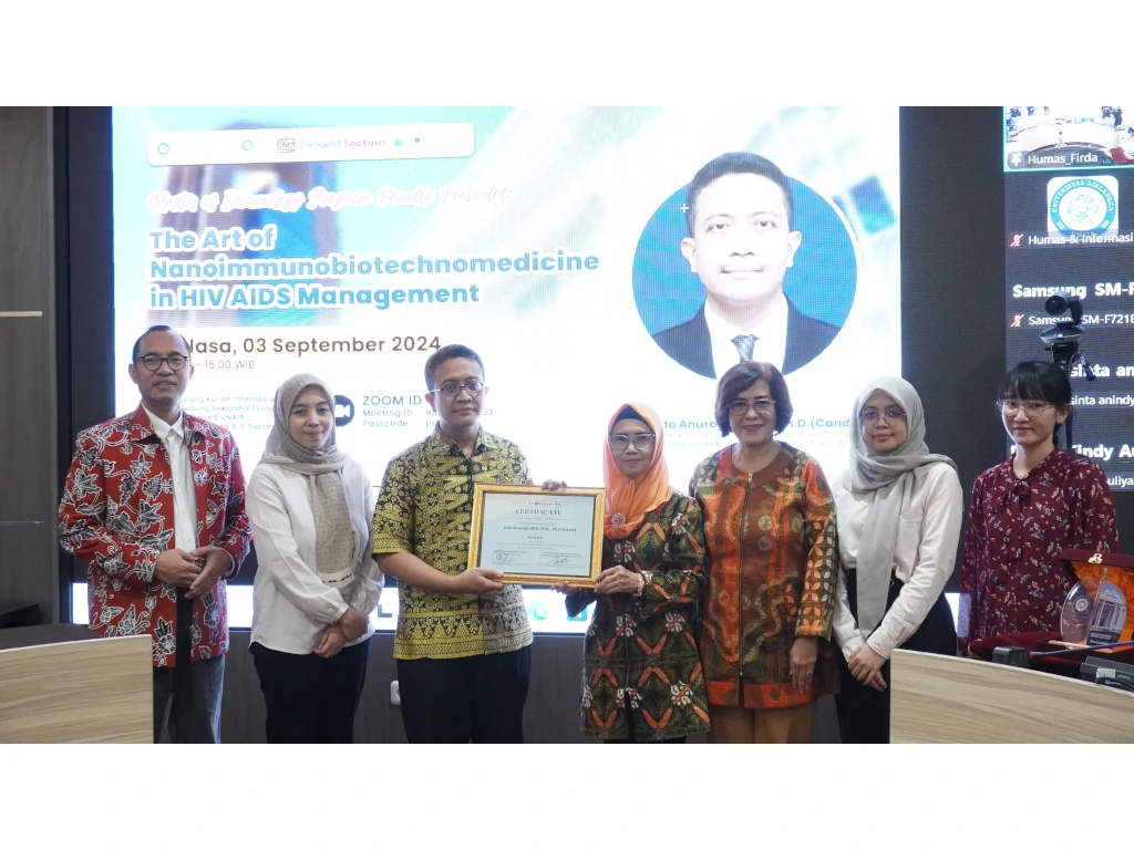 Guest lecture tersebut diselenggarakan oleh Program Studi S2 Ilmu Imunologi, Sekolah Pascasarjana, Universitas Airlangga, sekitar dua jam pada Selasa, 3 September 2024.