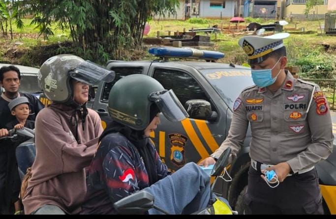 Polres Morowali Utara Bagikan Masker Cegah ISPA