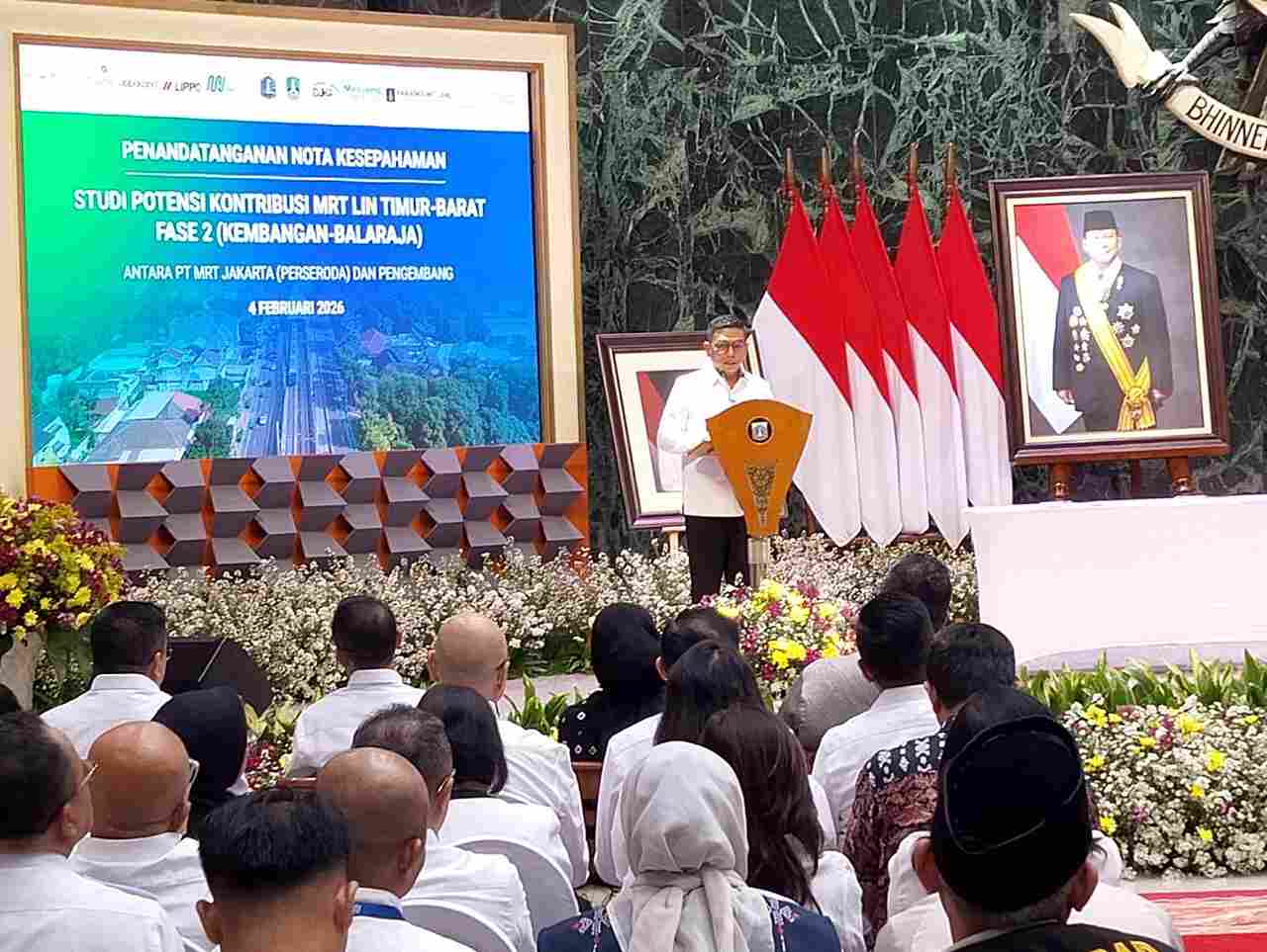 Hal tersebut disampaikan Andra Soni usai penandatanganan Nota Kesepahaman (MoU) Studi Potensi Kontribusi MRT Lintas Timur Barat Fase 2 (Kembangan–Balaraja) yang disaksikan Gubernur DKI Jakarta Pramono Anung di Balairung, Balai Kota Jakarta, Rabu, 4 Februari 2026.